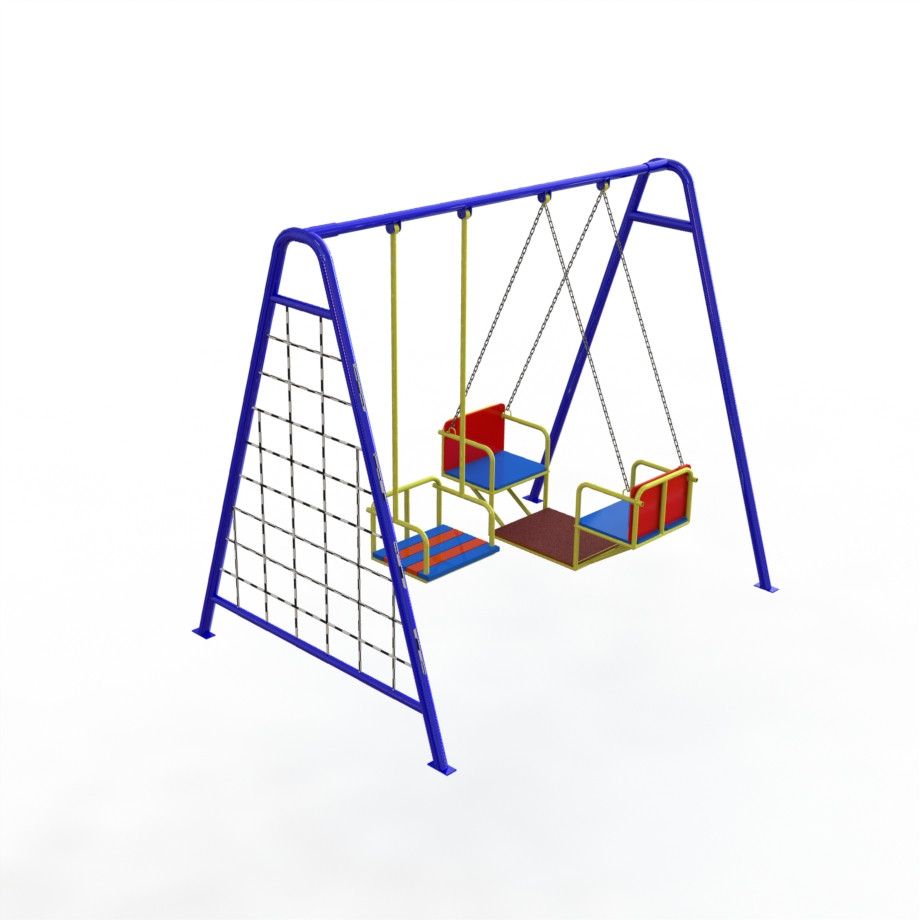Комплектація: гойдалки-човник на ланцюгах подвійні, гойдалки одинарні, дартс, баскетбольне кільце, гладіаторська сітка, комплект кріплень для складання та бетонування.
