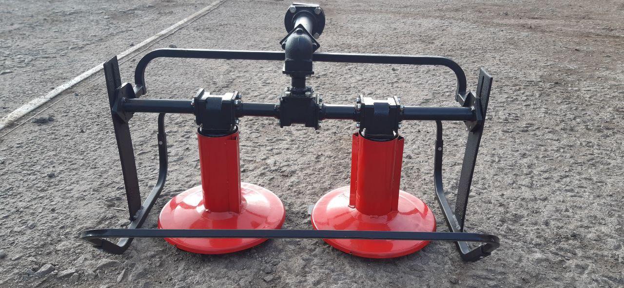 Дводискова роторна косарка на високих склянках призначена для покосу Вашої ділянки від бур'янів, різнотрав'я, густої трави (сіна) та невеликого чагарника за допомогою мотоблока із заднім валом відбору потужності діаметром 18мм під шпонку.